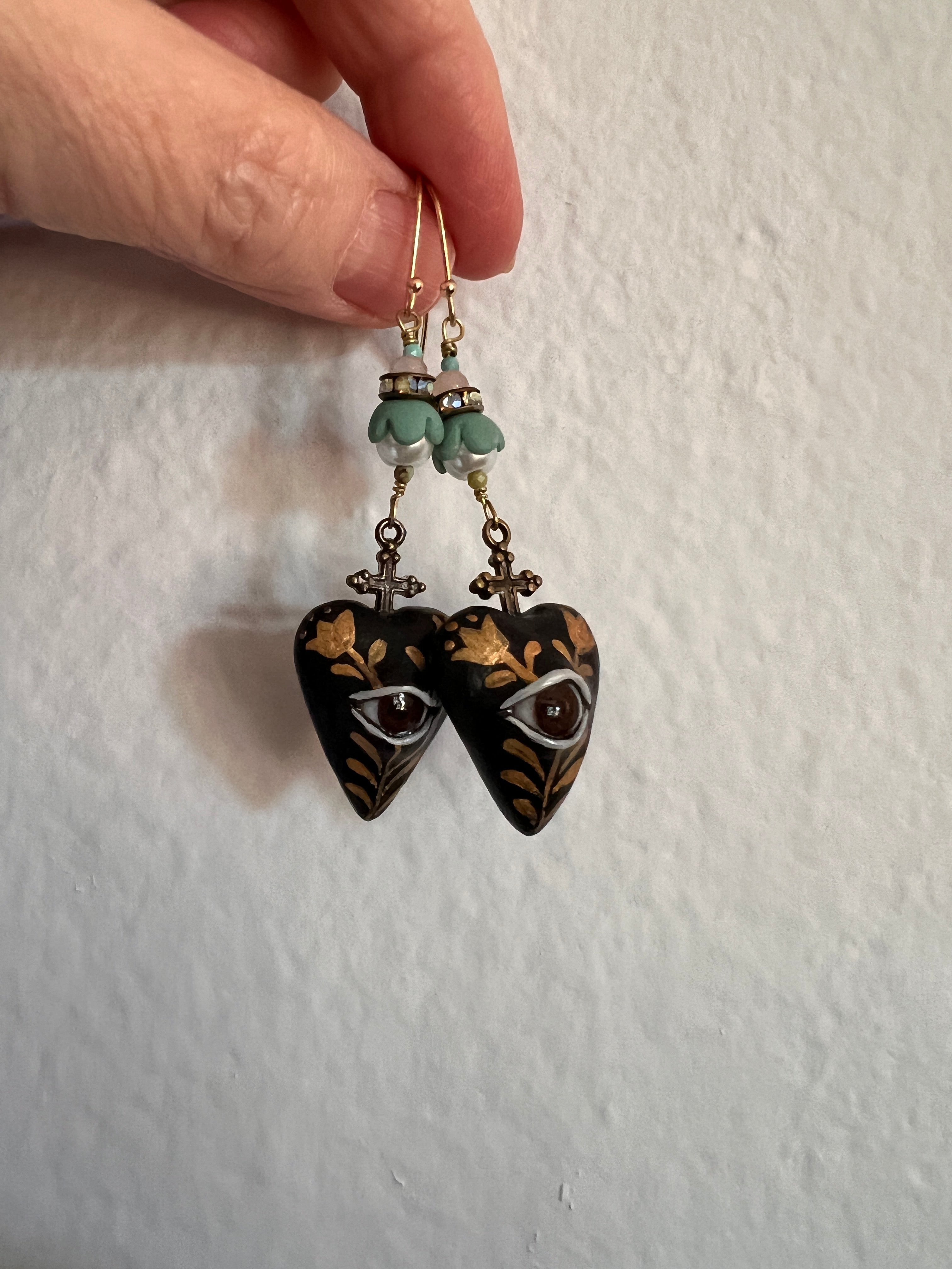 Windows to the soul black heart earrings
