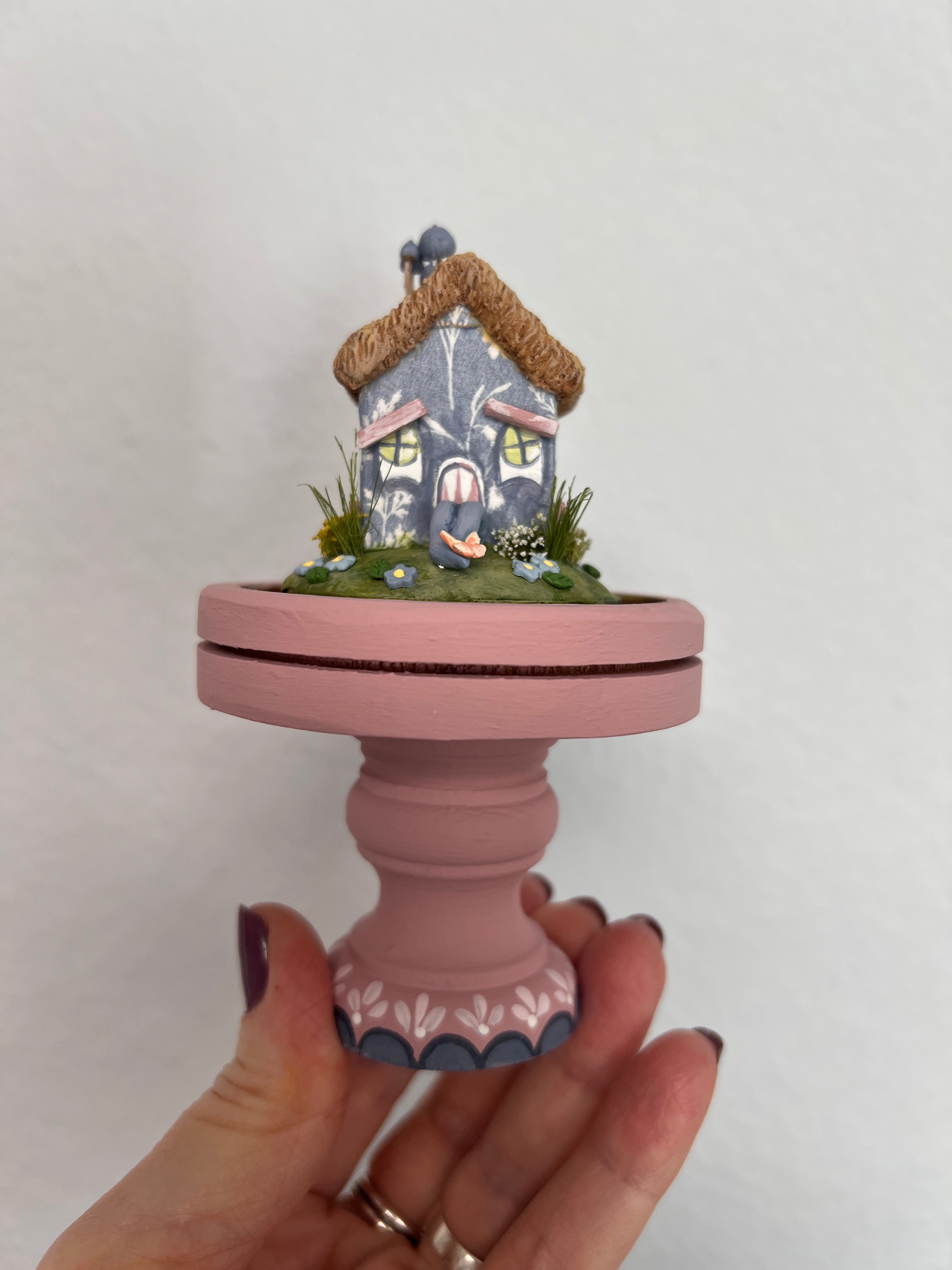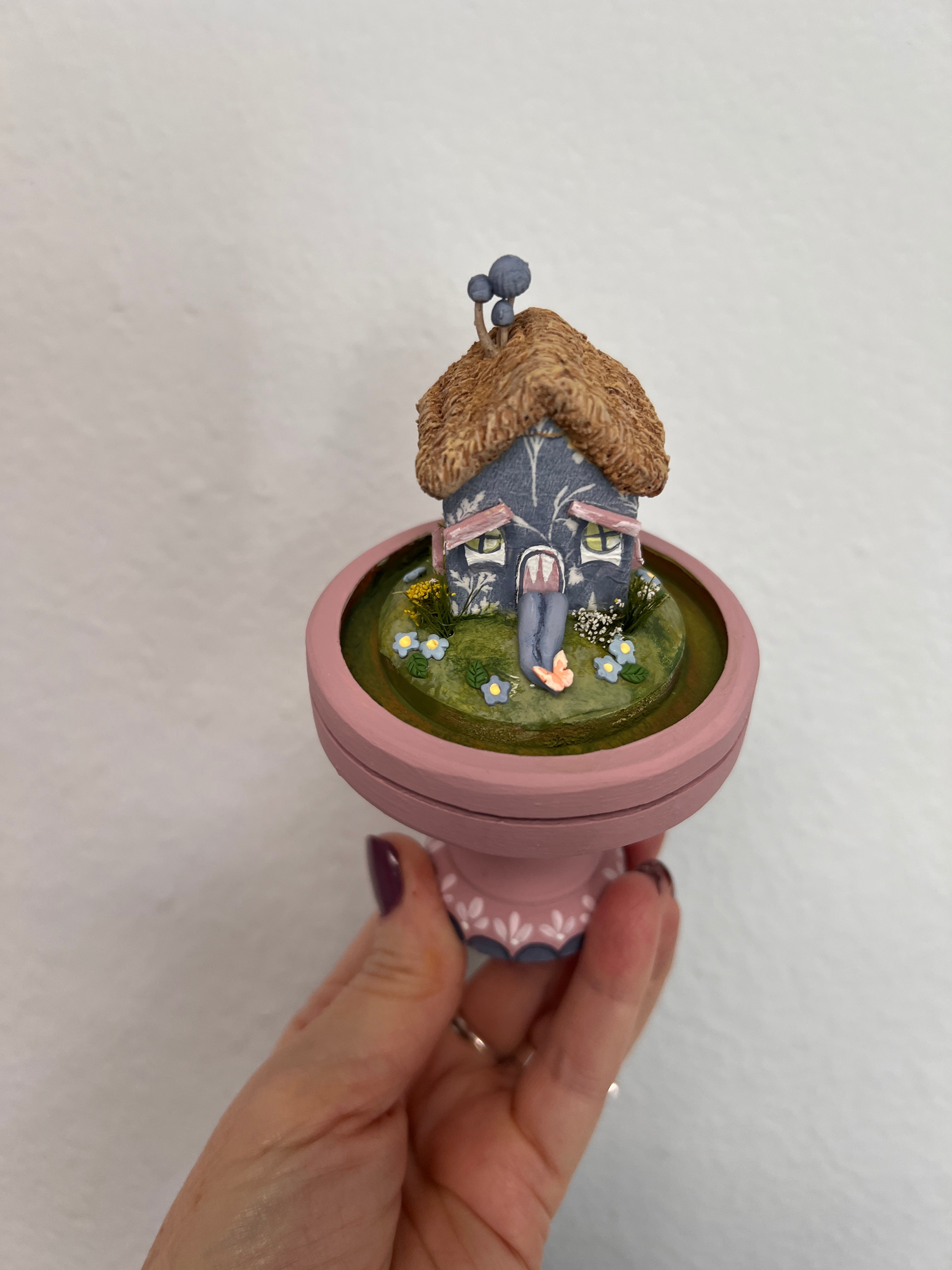 She is now fifth in my line of miniature monster houses. And she does come with a little glass cloche.