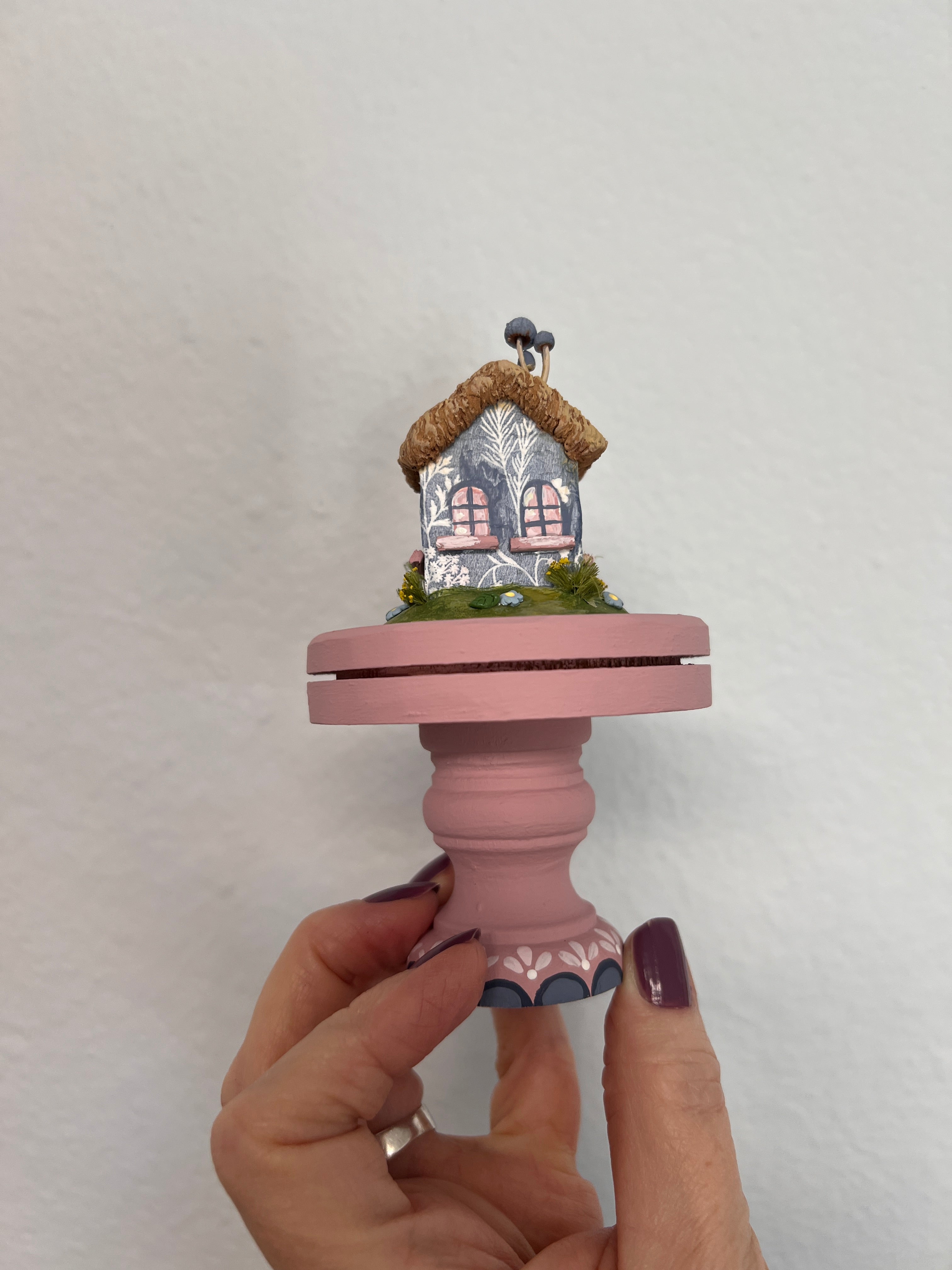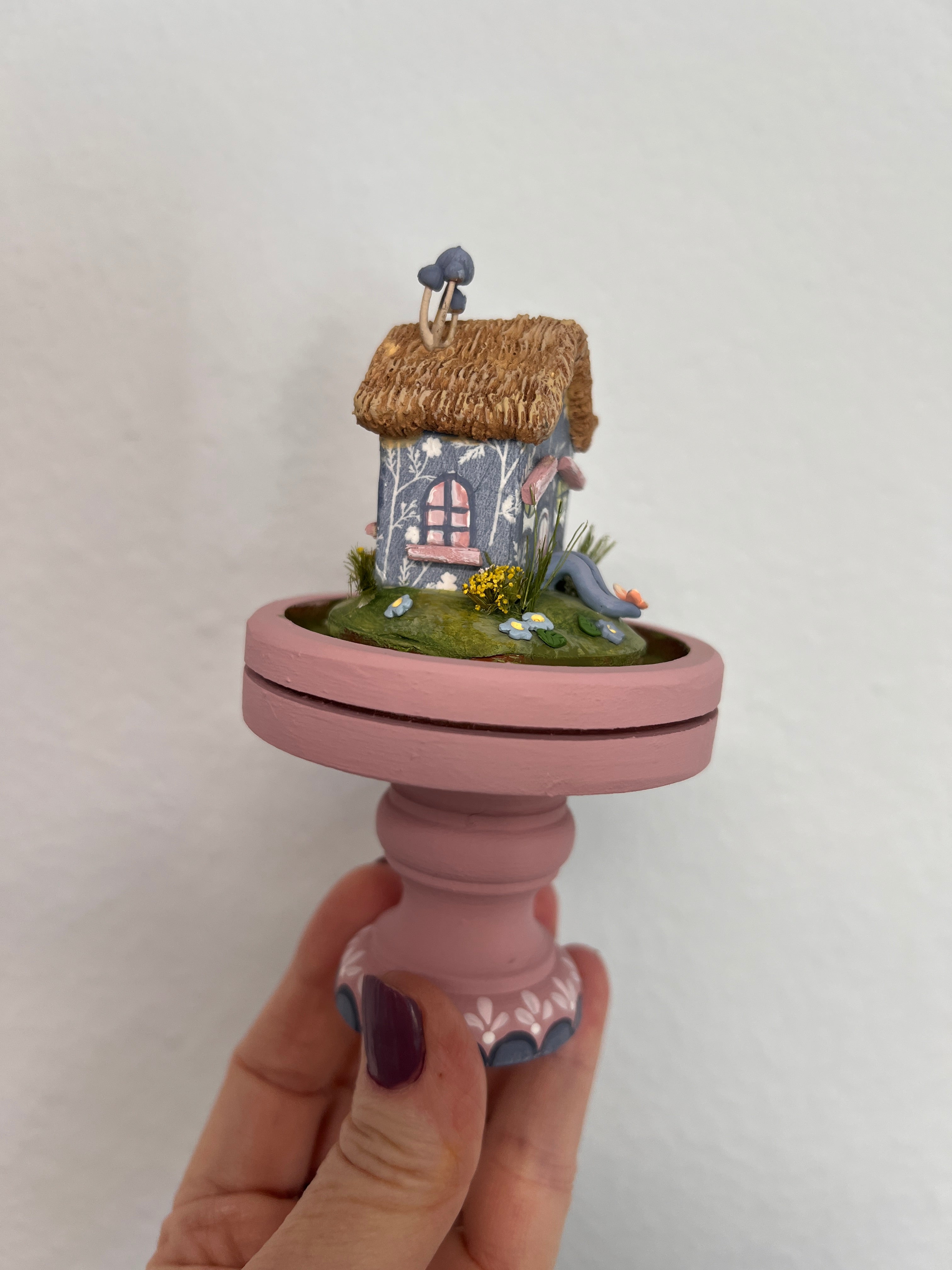 I have Longed to stay in an English thatched roof cottage. So when I conceptualize this little cottage and experimented with a few different materials, I was pretty happy with just how the clay turned out to re-create a thatched roof.